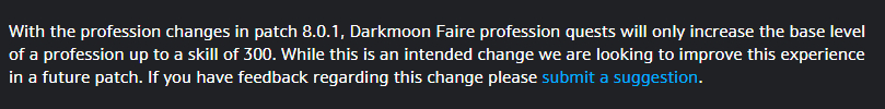 随着8.0.1补丁中的专业技能改动,暗月马戏团的专业技能任务将只会提供各专业技能的基础类别点数,