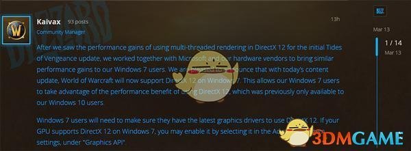 《魔兽世界》官方通过蓝贴公布了8.1.5版本图形API的支持与更新内容,包括DirectX 11多线程、Windows 7上DirectX 12等图形选项。