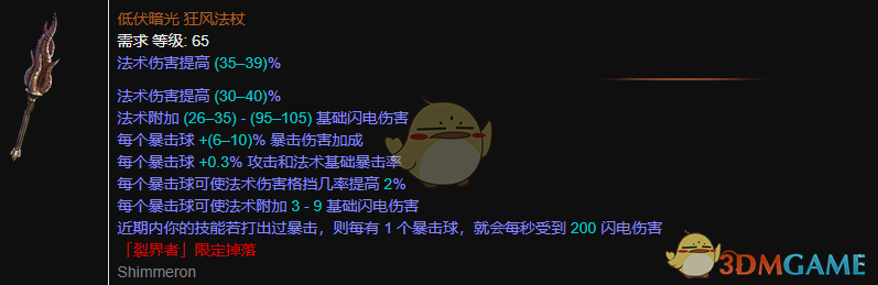 词缀选取:抗性,es,攻击词缀即可。暴击伤害词缀收益较高,施法速度影响部分手感。其他具体词缀差距有空我再更新。
