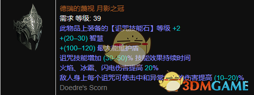 原来都不会用的头盔,这次因为混沌之毒的诞生,这个头盔成了混沌之毒极好的初期装备,+2诅咒技能正好可以加成到它,量大。