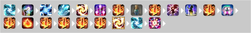 AOE循环比较自由,应该根据实际战斗有相应的调整。AOE的伤害来源主要是雷4、雷4云、核爆和秽浊这几个技能。 使用雷4的位置不固定。 不同于单目标循环,雷4云一旦触发应当尽早的使用而不是等buff或是dot时间结束。 或是激情直接雷4,或是在出小怪前对boss激情雷3。 如果可能的话,用秽浊来填充星灵后的空蓝时间。不然的话随便找个地方放掉秽浊就可以。 如果不用于移动的话,即刻和三连应该用在核爆上来缩短读条时间,增加等GCD转好时的回蓝几率。 在较多怪的时候使用火2来减少星灵后的贤者时间占比是正收益。但实际上,小怪的血量有限,星灵后的贤者时间也可以用秽浊、雷4云、瞬发的核爆来抵消。 示例 连续核爆