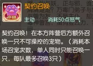 契约召唤:在本方阵营后方召唤出一个不可操控的宠物。(消耗本场召宠次数,单人同时只能召唤一只,每队最多召唤3只)