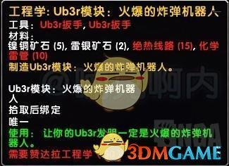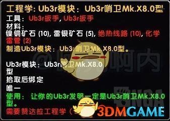 魔兽世界8.15版本为大家带来很多新的专业物品,例如Ub3r扳手正是当中之一。该物品属于工程学,需要完成特定任务才可提交。那么Ub3r扳手怎么获得?下面就为大家带来魔兽世界8.15工程Ub3r扳手任务攻略。