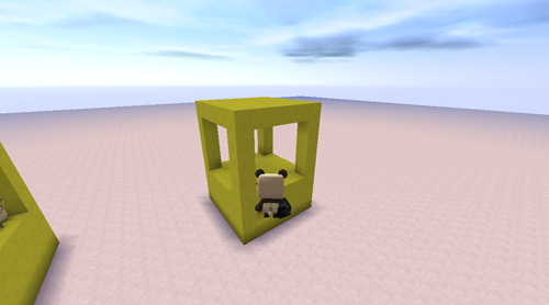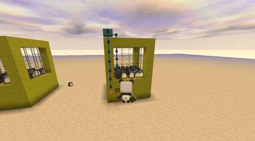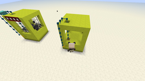 工具准备:方块、触碰按钮、蓝色电能线、木质天窗、企鹅、电能增幅器、透明玻璃片