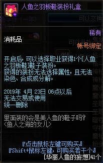 人鱼之羽板鞋装扮无法选择属性,该装扮需要41个华丽人鱼的幻想获得。