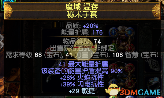 黄装高ES手+腰带(暗金可以选凝息腰带,虚空之力手套)