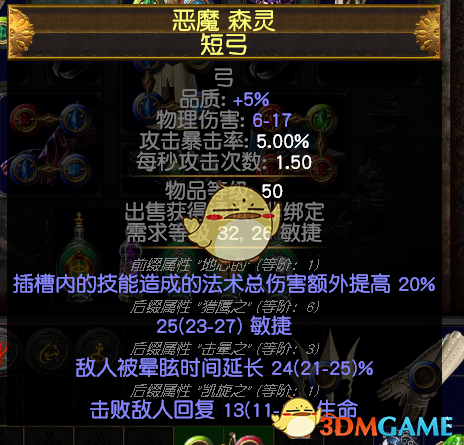 ③弓前缀【可以看见弓的前缀除了+1技能宝石全部都是攻击词缀】