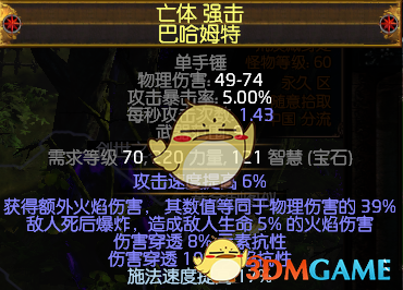 说明:尽量腐化出“物理伤害转火焰”效果很不错。