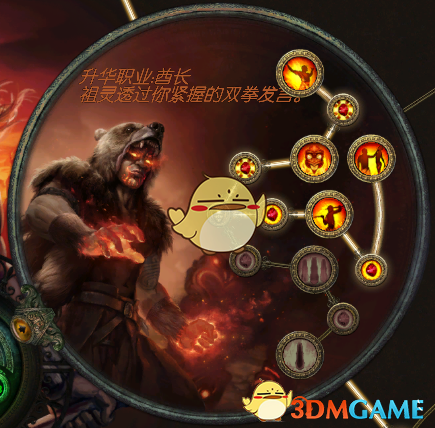 输出机制:酋长升华的“火徒”和“死之狂怒”提供了我们主技能定罪波的输出方向,就是“物理转火焰”。另外,这两个天赋所提供的输出属性我用一句话概括就是“免费送你一个索伏项链”。这里我着重说一下定罪波这个技能的转伤问题,技能自带25的转火和25的转电,而这个转换属于“基本性状”不会被技能的“改变性状”所影响,也就是说当你拥有这套天赋的时候技能会带25%的电伤。根据转伤公式“物理-闪电-冰霜-烈焰-混沌”,是可以把电伤转成火伤的,只不过会浪费掉很多属性而且也无法完全转换。所以,我的做法就是不转剩下的25%电就把他当成一种“增伤”就可以。