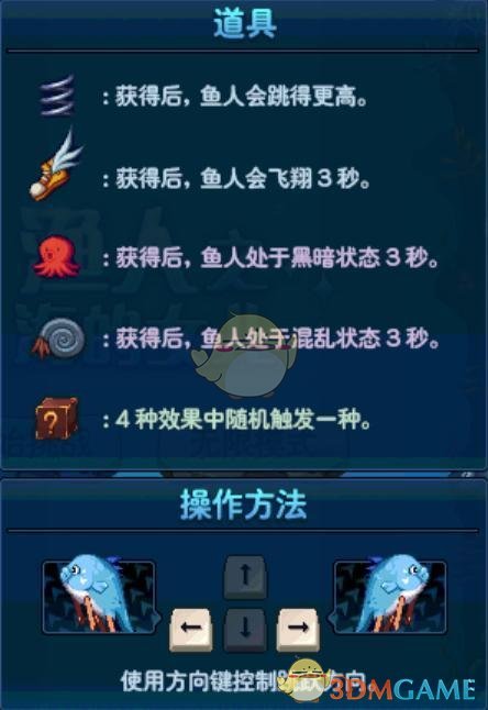 小游戏的操作方法是使用左右两个方向键控制跳跃的方向,也就是左右跳跃,在游戏过程中会出现5种道具: