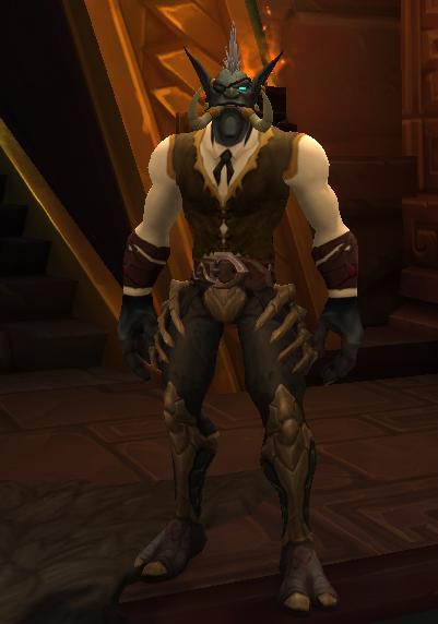 这个狂暴战的幻化,由于属于重甲风格基本上看不出来太多的种族特征,但是一双鸵鸟脚就完全暴露了。把脚挡上100分,算上脚50分,差评。