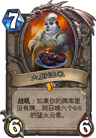 最后这张766的大厨诺米,给我的第一个反应,这不就是奇数贼的卡么,后手5费麦拉,6费跳币大厨,满场66,我觉得,相当强啊,后来想起来奇数贼在标准已经马上没有了,牌库里没有牌再用的话我觉得经常可以打到疲劳的控制法可以考虑带一张,这张卡就像是绝境里,然后突然一波大场面,像大表哥一样打对面措手不及,我觉得还是有强度的。