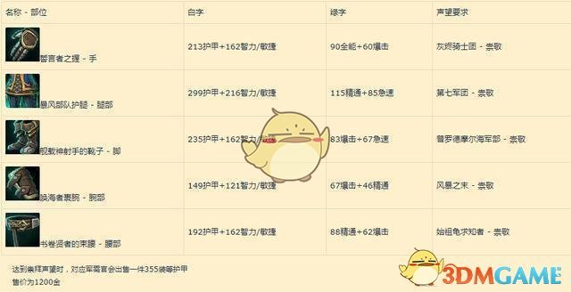 阵营声望达到崇敬时,对应军需官会出售一件装备等级340的布甲、皮甲、锁甲、板甲售价为崇敬1020金、崇拜960金。因为装备较多这里就不一一列举了。