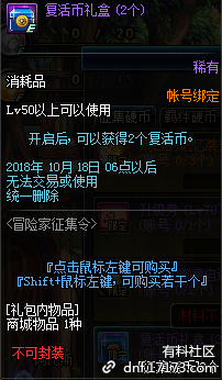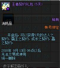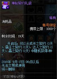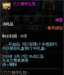 每个账号限购买1次,只能使用点券购买,开启后可获得1个[永恒契约光环装扮礼盒](有属性)&1个[99礼盒]
