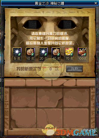 活动期间推荐地下城会掉落黄金沙,收集即可进行祈愿,祈愿可获得真理之光。