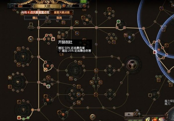 我的天赋构思比较独特,一般人会把天赋点集中在1-2块区域并榨干其周边的属性值。而我则是找到自己BD想要的属性,然后梳理出最优化的路线直奔过去,所以我一共点出了5块天赋区域(我的天赋一共有31点路过的属性点)。