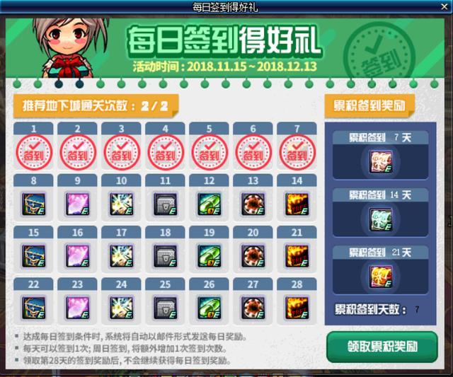 其他累计签到的奖励第14天有5张魔界裂缝通行证和5个装备品级调整箱,而我更期待的是这5个锻造炉,看看能不能让我锻造7的武器成功上8。