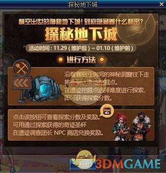 更新这个活动后在赛利亚房间有一个神秘洞窟,沿着这个洞可以走到遗迹的挖掘点,然后根据难度探索获得探索分数。探索可以获得材料奇迹圣杯。使用这个材料可以兑换奖励,同时探索分数达到一定数量可以获得累计奖励。活动的玩法,后期会专门做爆料。