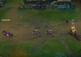 EQA连招:这一连招用于线上消耗或者在gank时打出第一波爆发伤害,并利用E技能的控制效果,使得两次Q技能全部命中。