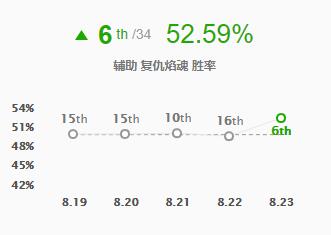 原本已经跌出前十的胜率又一次上涨了不少,而在登场率方面更是维持在上路第一的位置。