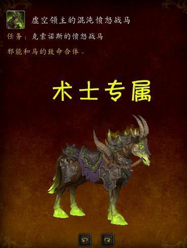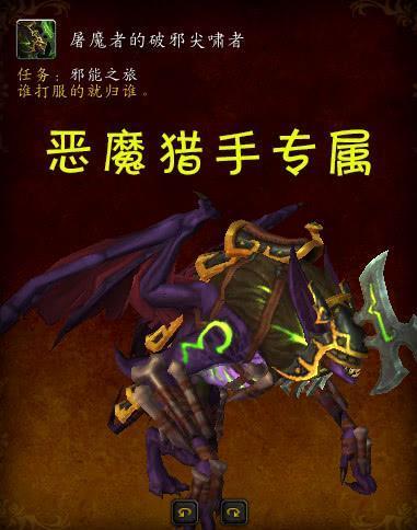 恶魔猎手的职业坐骑,坐骑缰绳一个,颜色也只有一种,跟之前的女王任务送给部落玩家的蝙蝠样子差不多。