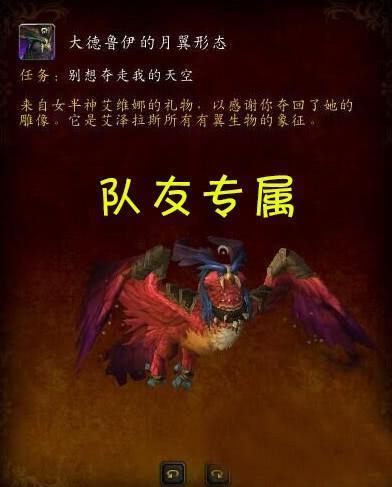 变身为能载人的形态,不同种族不同颜色,可以说是最受欢迎的了,毕竟可以秒上的坐骑不是很多的(你懂得)。