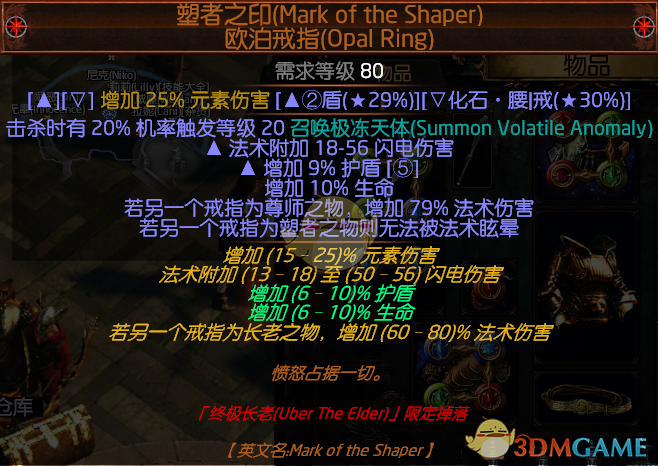 欧克提供大量抗穿以及一定元素减伤,我们需要确保在服用恨意的时候闪电抗性绝对值仍然保持最高。