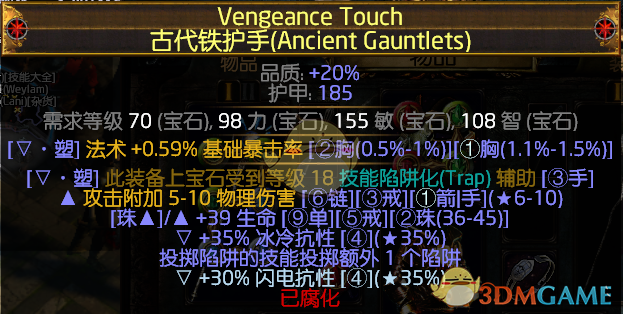 通常我们会洗出解除诅咒,以及持续时间延长等词缀,以获得稳定的移速加成,以及应对恶心的时空锁链等。