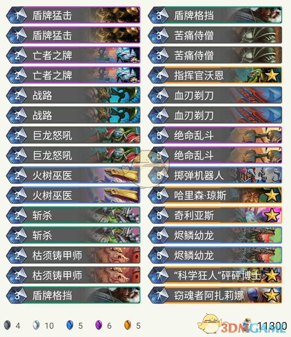 狗贼叔叔新版本继续构筑他的叠甲战(挨打就完事儿了)。这套狗贼的龙防战采用了无限体系,并且这套卡组有着强力的叠甲苟活能力:枯须铸甲师、盾牌格挡、烬鳞幼龙。巨龙怒吼和火树巫医可以给战士补充手牌,当最后乱斗斩杀卡手时,我们还可以使用窃魂者阿扎莉娜复制对手的手牌。