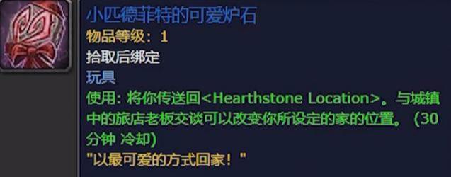 最后一个步骤就是此次华丽特效炉石一共需要150个爱情信物才能兑换,回到主城与NPC兑换就能看到这个可爱而又华丽的炉石了。如果大家刷怪够效率一个半小时就能入手这个道具了,兑换后点击就会加入到玩家的玩具箱中,搜索炉石就会出现【小匹德菲特的可爱炉石】。完成以上三个步骤后接下来的特效才是最值得大家期待的,我们接着往下看!