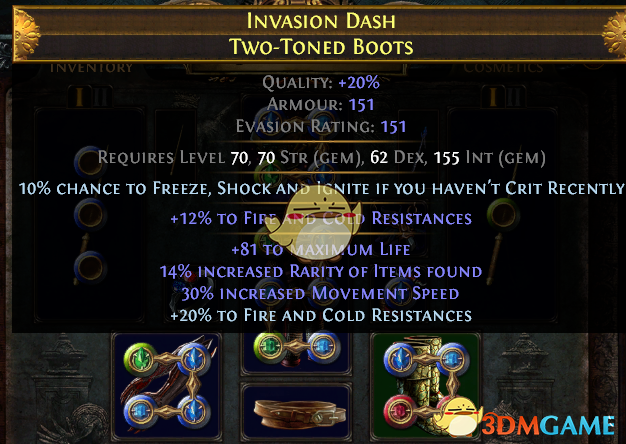 为什么要抗性我这里说一下,因为这个BD如果使用单手武器,则可以在武器上补齐抗性,由于项链手套头盔以及一颗戒指位置不太好找抗性,抗性压力完全落在腰带鞋子以及另外一颗戒指上,如果有必要,则在武器上补齐缺失的抗性