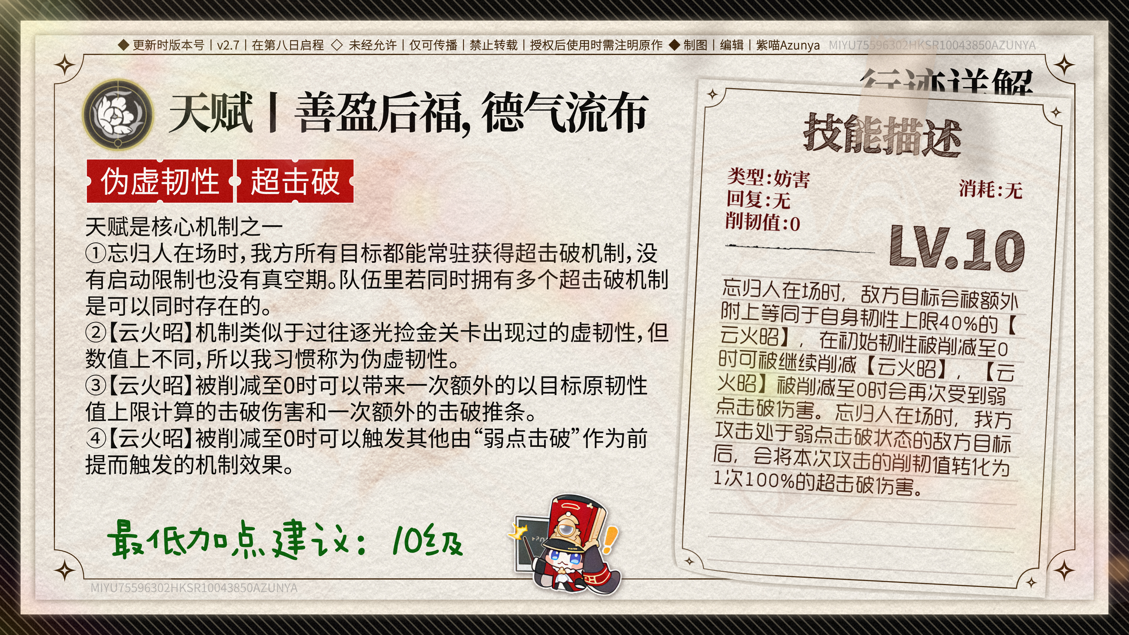 ③【云火昭】被削减至0时可以带来一次额外的以目标原韧性值上限计算的击破伤害和一次额外的击破推条。