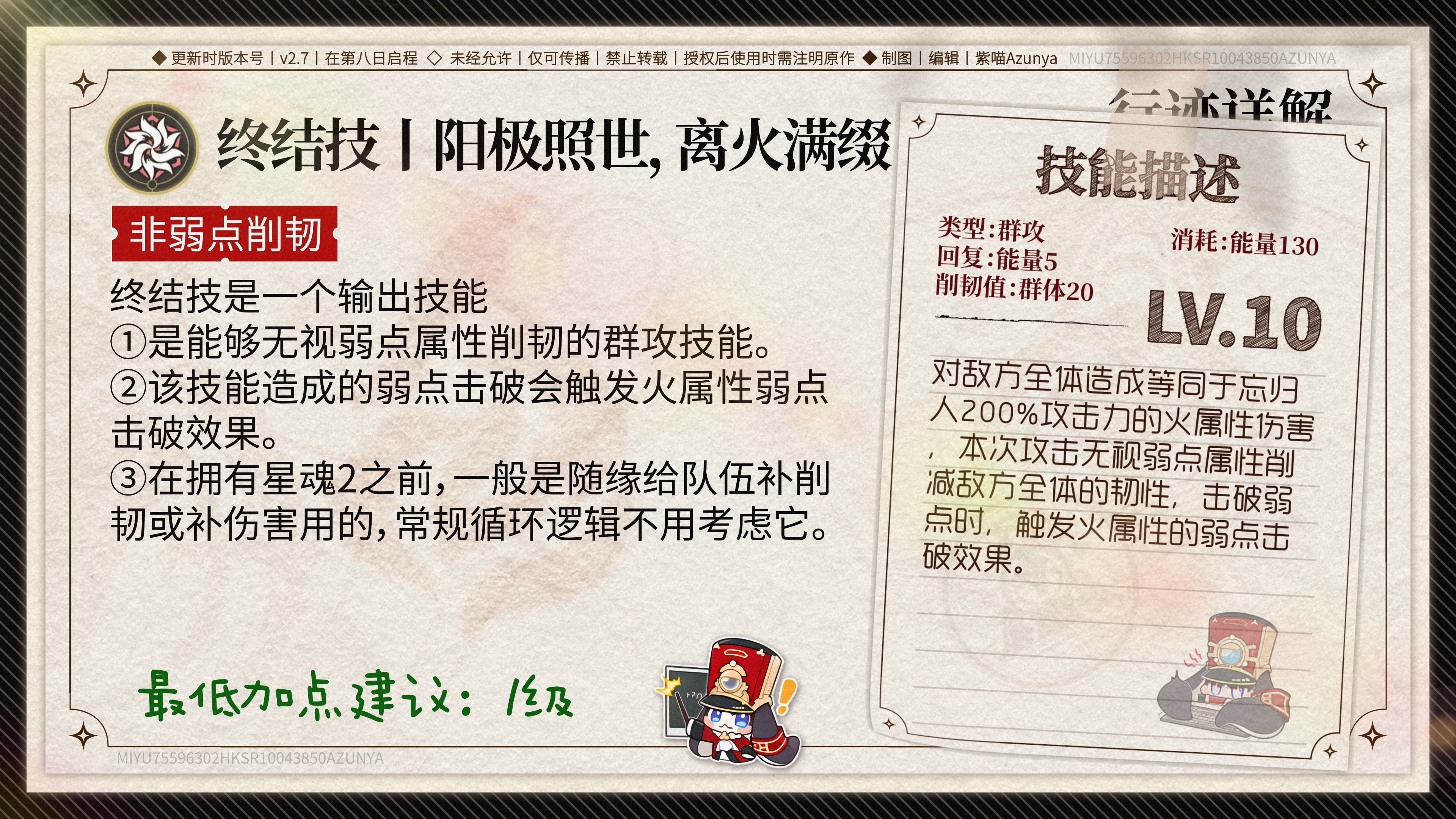 ②该技能造成的弱点击破会触发火属性弱点击破效果。