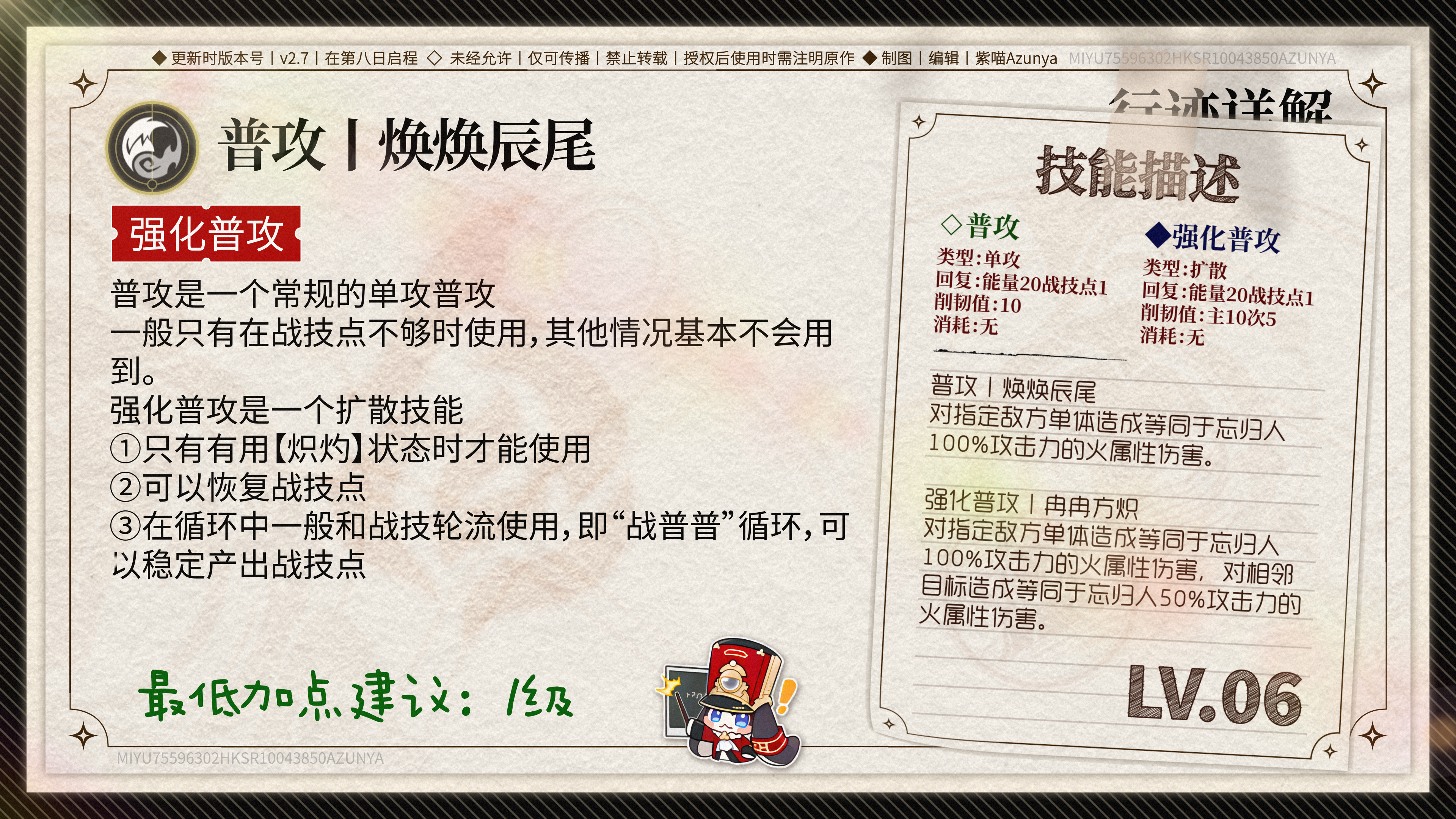 ①实战中若战技点充足,不用非常严格按照战普普的循环,可以灵活地切换战技目标,利用无视弱点削韧的效果让全队更快地击破敌人。