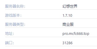 我的世界里面有很多的服务器,每个服务器都有自己的独特的玩法,今天给大家带来的服务器的名字叫:幻想世界,那么下面就是这个服务器的一个具体的IP地址.