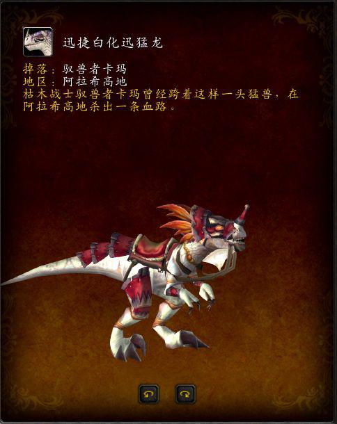 | 驭兽者卡玛 | 坐骑 | 迅捷白化迅猛龙 |