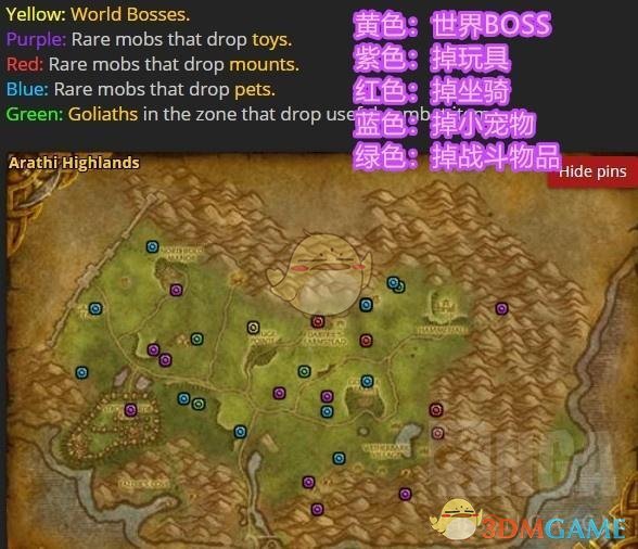 战争前线-阿拉希的稀有怪,联盟和部落都可以打,稀有怪掉落玩具,坐骑,小宠物,小道具,还几率掉落280,340和355装备。