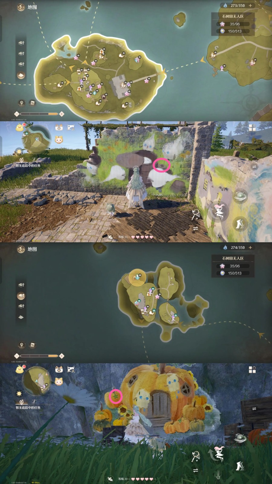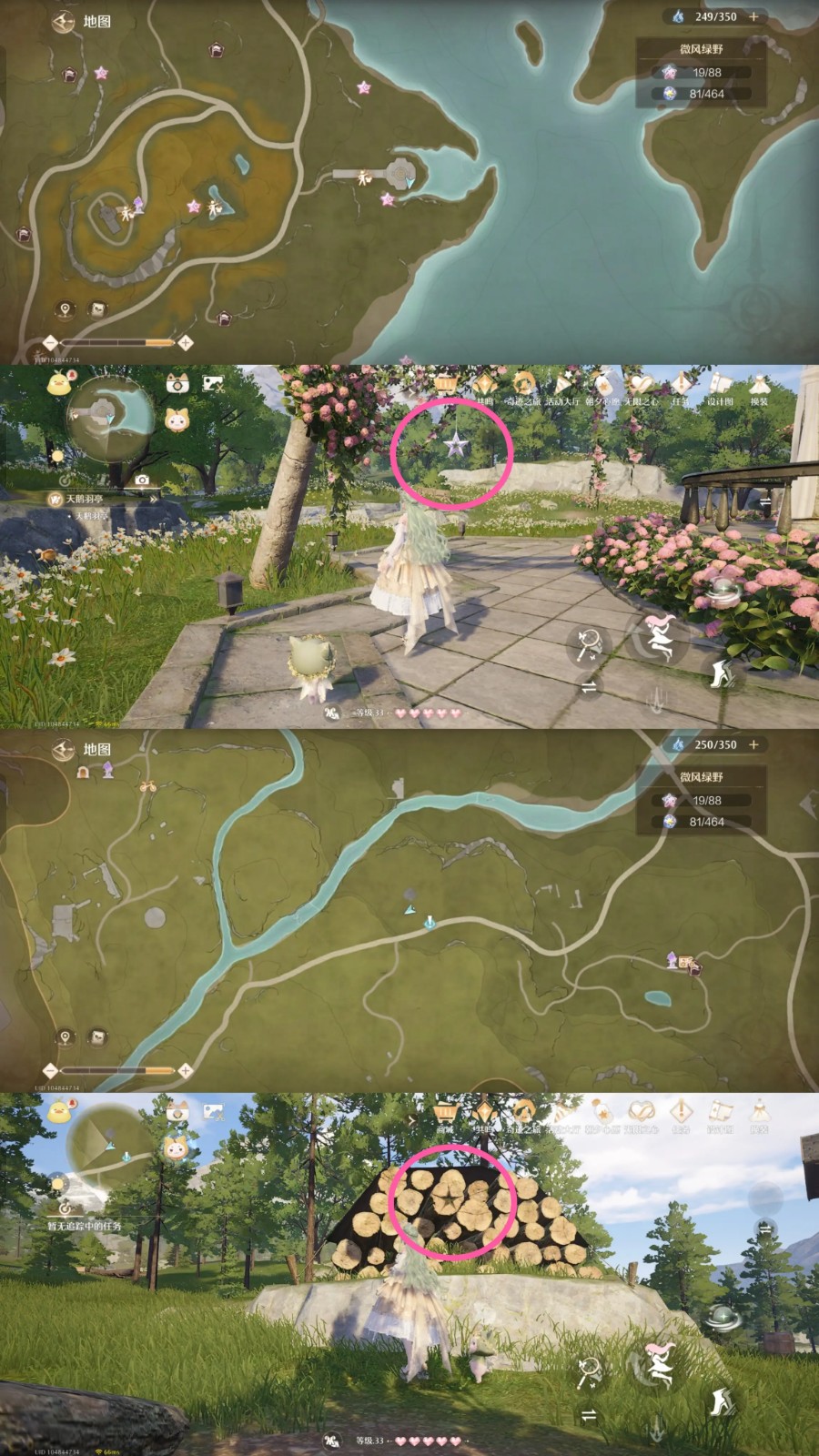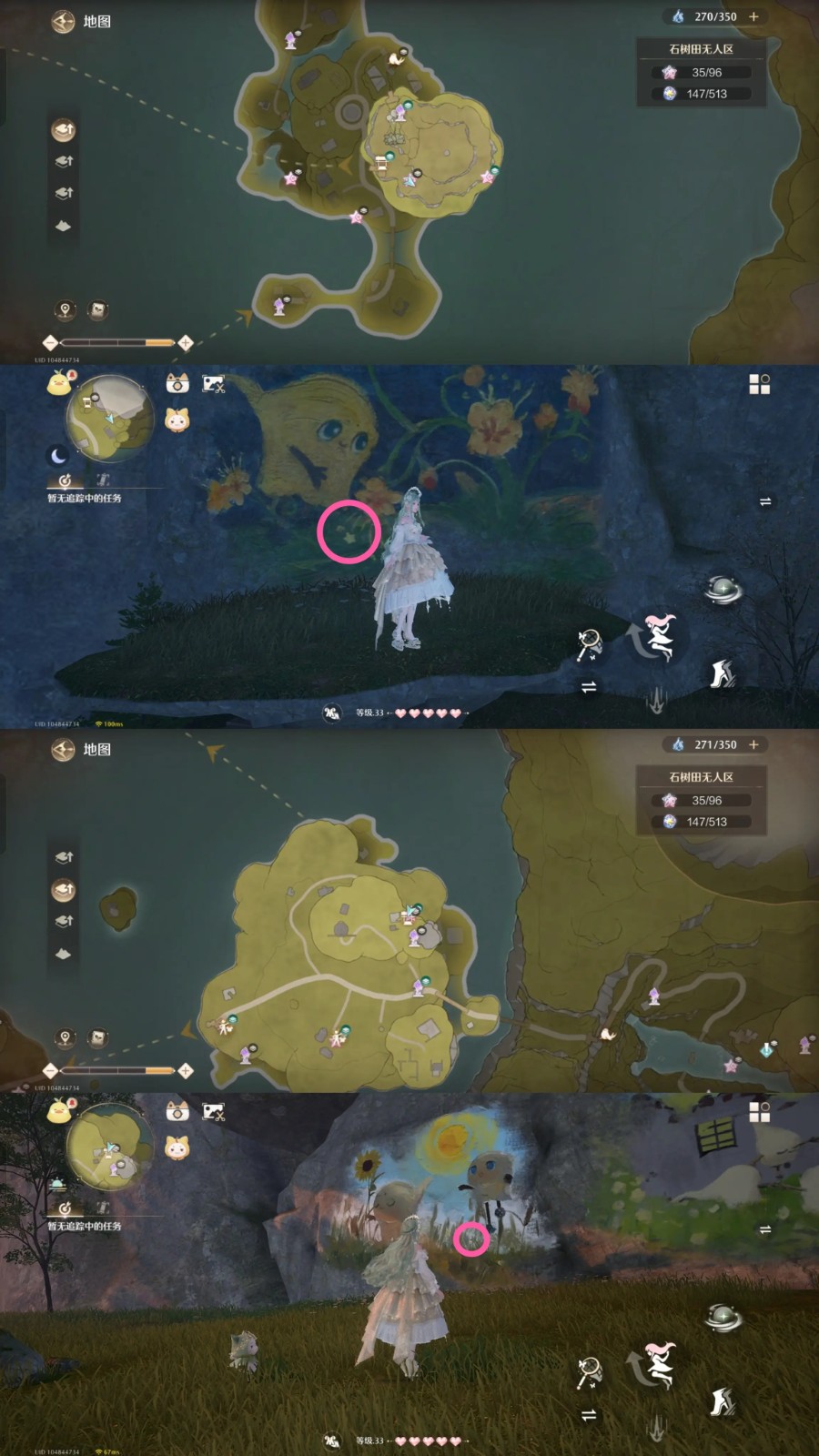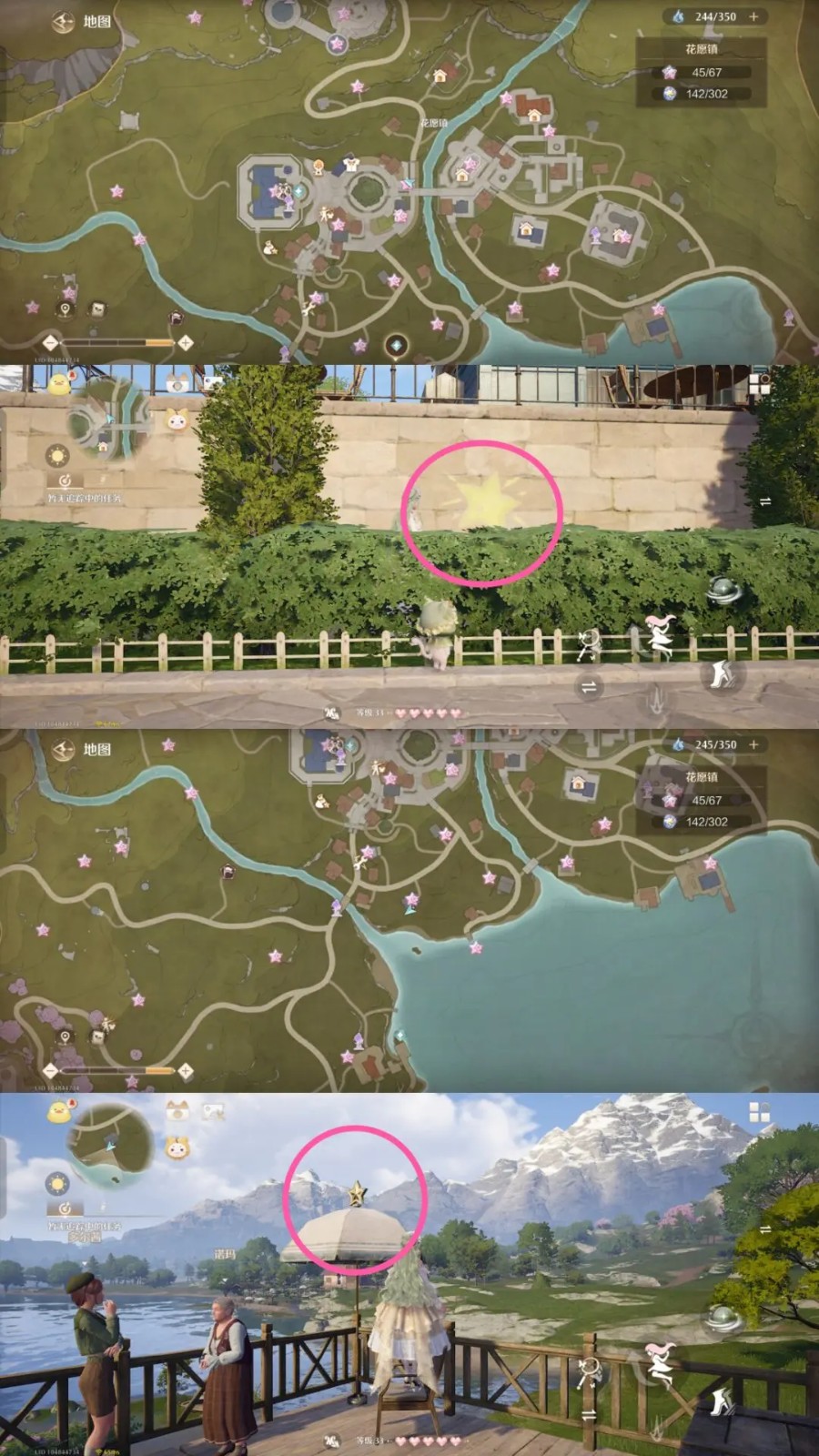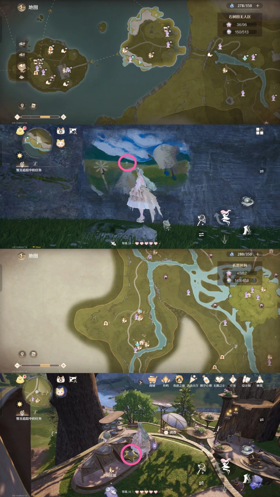 蓝色小箭头就是奇想星点位,粉色圆圈圈出来的就是要找的星星位置,靠近点调查就行。