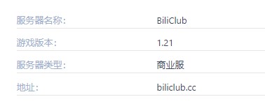 我的世界里面有很多的服务器,每个服务器都有自己的独特的玩法,今天给大家带来的服务器的名字叫:BiliClub,那么下面就是这个服务器的一个具体的IP地址.