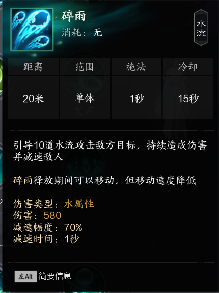 1碎雨:单体攻击 释放为读条 且自身减速(攻击)