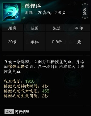4锦鲤谣:单体治疗 顺发技能 需要消耗2鱼灵(治疗)