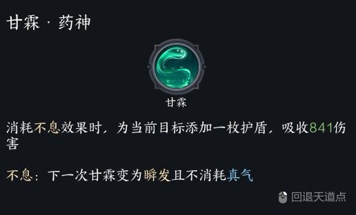2甘霖药神:释放甘霖额外获得护盾