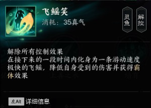2飞鳐笑:变成鳐 有加速霸体和减伤 变身期间无法释放其他技能 可提前结束