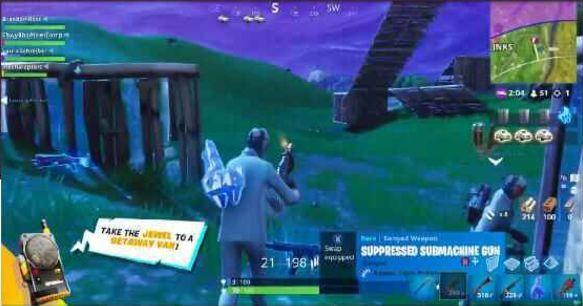 首先,玩家们会像往常一样跳伞,但本次风暴圈缩得很快,范围也很小。要注意地图上的4个保险箱图标(同时这些标志也会显示在罗盘上方),这就是宝石羊驼的降落地点(分别处于风暴圈的四个不同方向)一你可以先搜刮物资,再去找保险箱,又或者是寻找背着羊驼的敌人。一般来说先找到保险箱的队伍会更有主动权。值得注意的是,一共会刷新4只羊驼,4辆箱型车一这意味着最多可以有四支队伍获胜,但也可以只有支最强怪盗队获胜(4只宝石羊驼都在一队人手里).