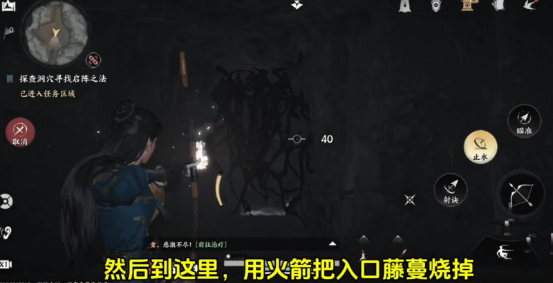然后到这里,用火箭把入口藤蔓烧掉,进去里面开启宝箱,并且会触发进去入下一步的开关。