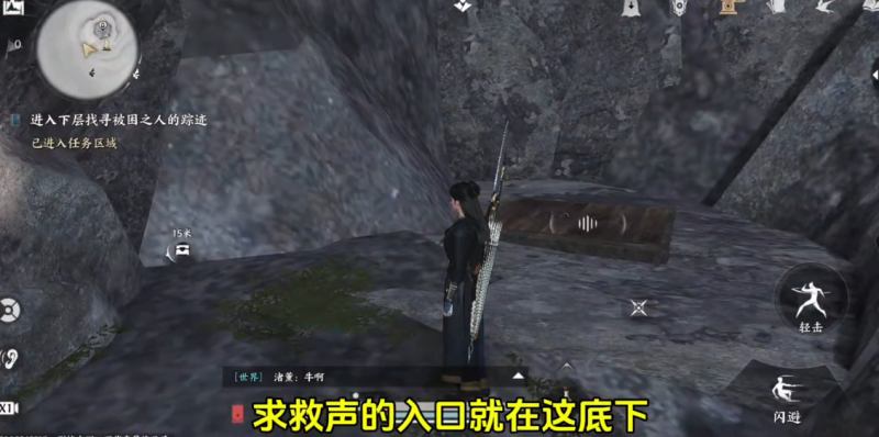 求救声的入口就在这底下,下去后先跟岩壁后面的人对话。