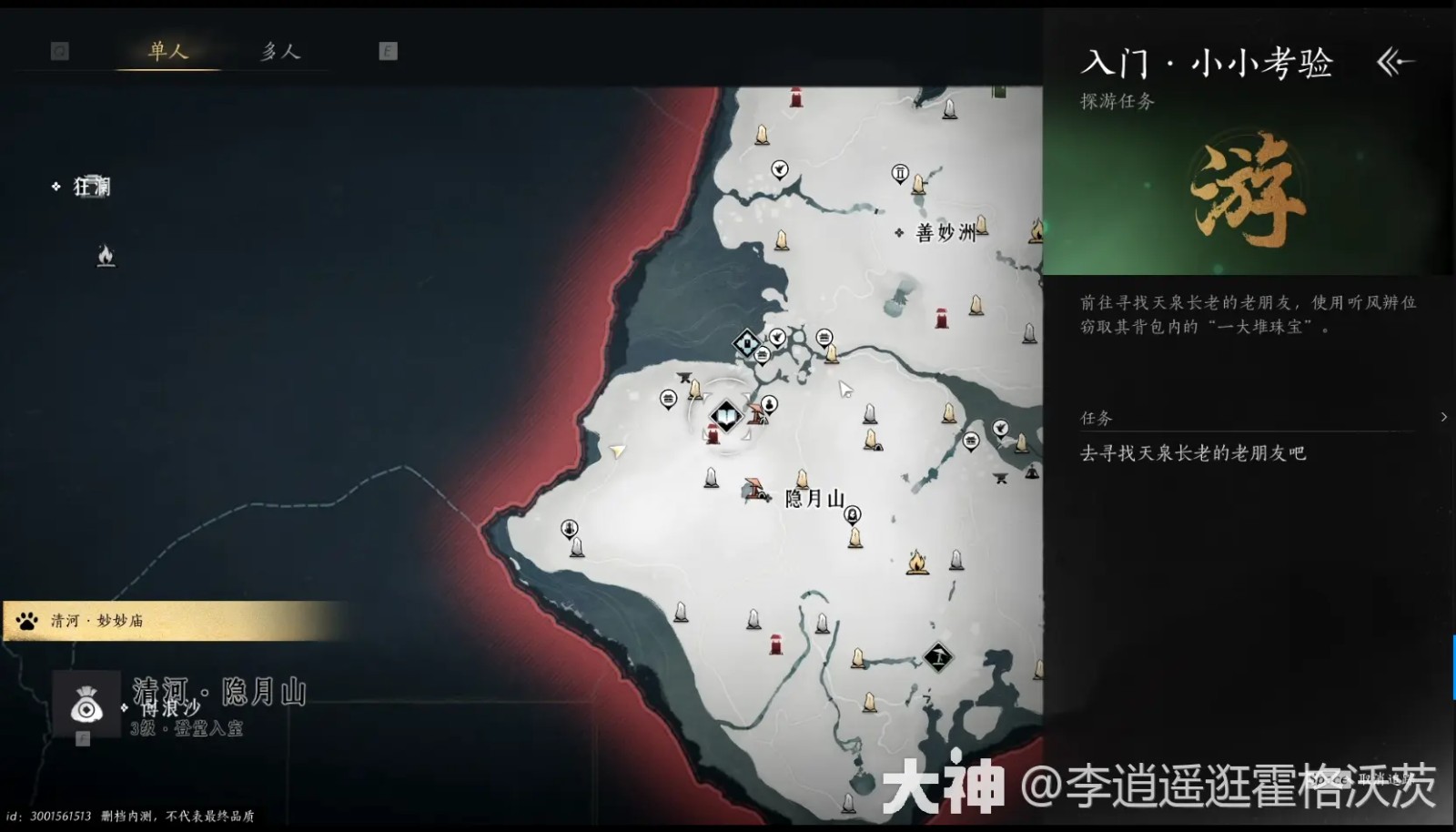 接下来算是拜师天泉真正的难点,没记住之前位置的话,此时任务无任何线索。回到之前我们索要珠宝的地方,真正的天泉接引人张一豪师兄在等你。
