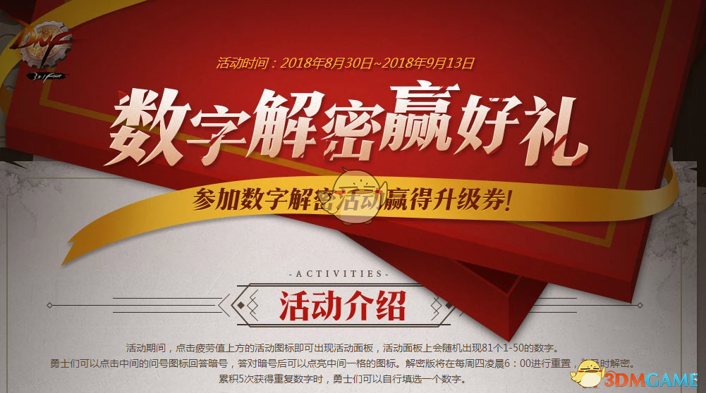 为了迎接2018国庆的到来,DNF官方推出很多新的活动,数字解密赢好礼正是当中之一。该活动需要玩家猜测正确数字,那么9月8日数字解密答案是什么呢?想要对此了解的同学就跟小编一起来看看吧。