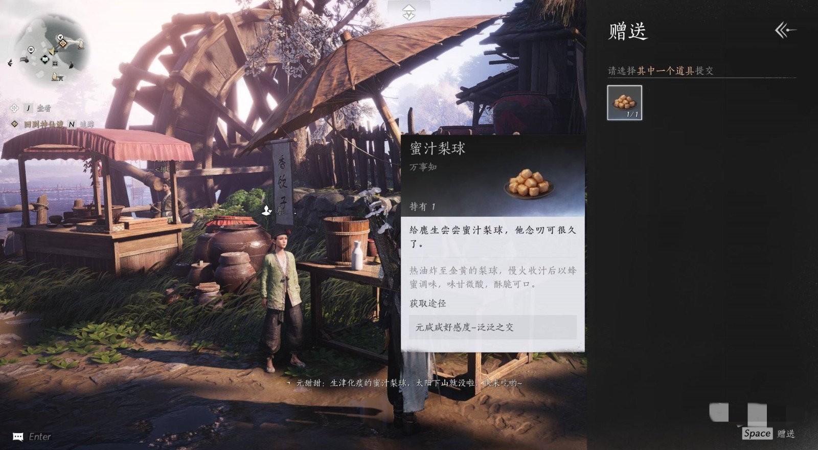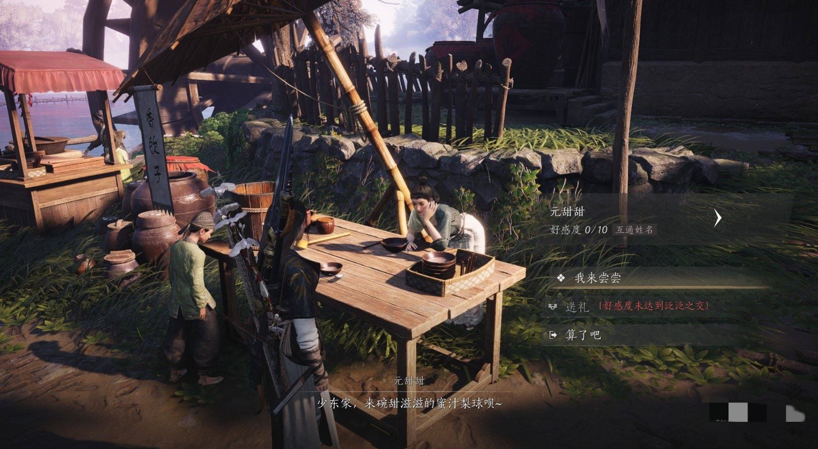 另外,元甜甜是神仙渡的商人,从她那里购买商品就能提升好感度,无需额外对话,好感度到一定程度后还可以解锁额外的商品。