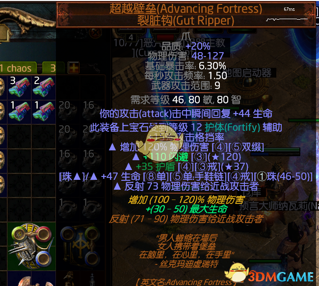 腰带 戒指 项链都要高血高抗 最好有高武器元素伤 因为本bd缺敏捷所以首饰上必须有50左右的敏捷
